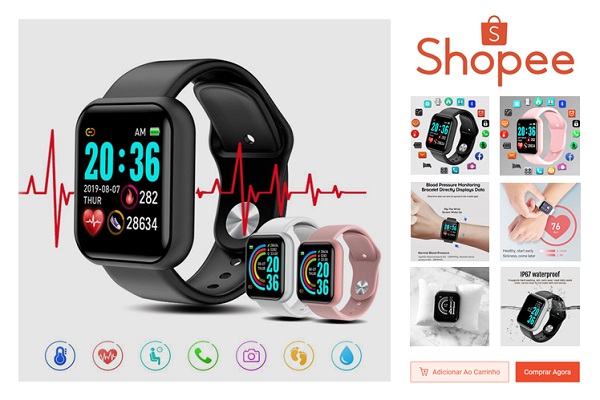 Relógio à Prova D’água Foto na Tela Bluetooth e Smart Fitness Monitor.